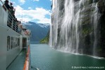 Erstes Tagesziel ist der mächtige Briksdal Gletscher. Gäste, die Troll Cars dazugebucht haben, werden von der Reiseleitung über Treffpunkt etc informiert. Weiter geht es nach Geiranger, um eine Bootsfahrt auf dem Geirangerfjord zu genießen. Fast senkrecht ragen die Felswände hinauf, Wasserfälle mit poetischen Namen rauschen donnernd in die Tiefe.